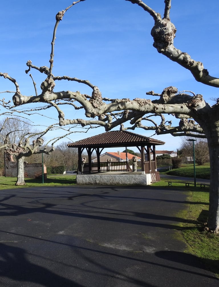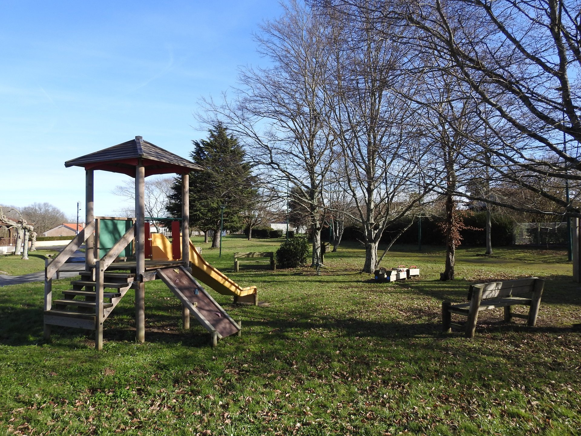 L'espace extérieur offre un beau cadre apaisant, avec une jolie mare, de grands arbres et des équipements permettant de s'installer confortablement pour profiter de cet environnement agréable.