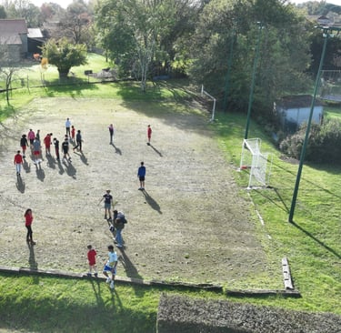 Le terrain multisport situé à l'extérieur offre un espace plat et entretenu pour pratiquer des sports comme le football, le handball, le basketball, la pétanque, etc.